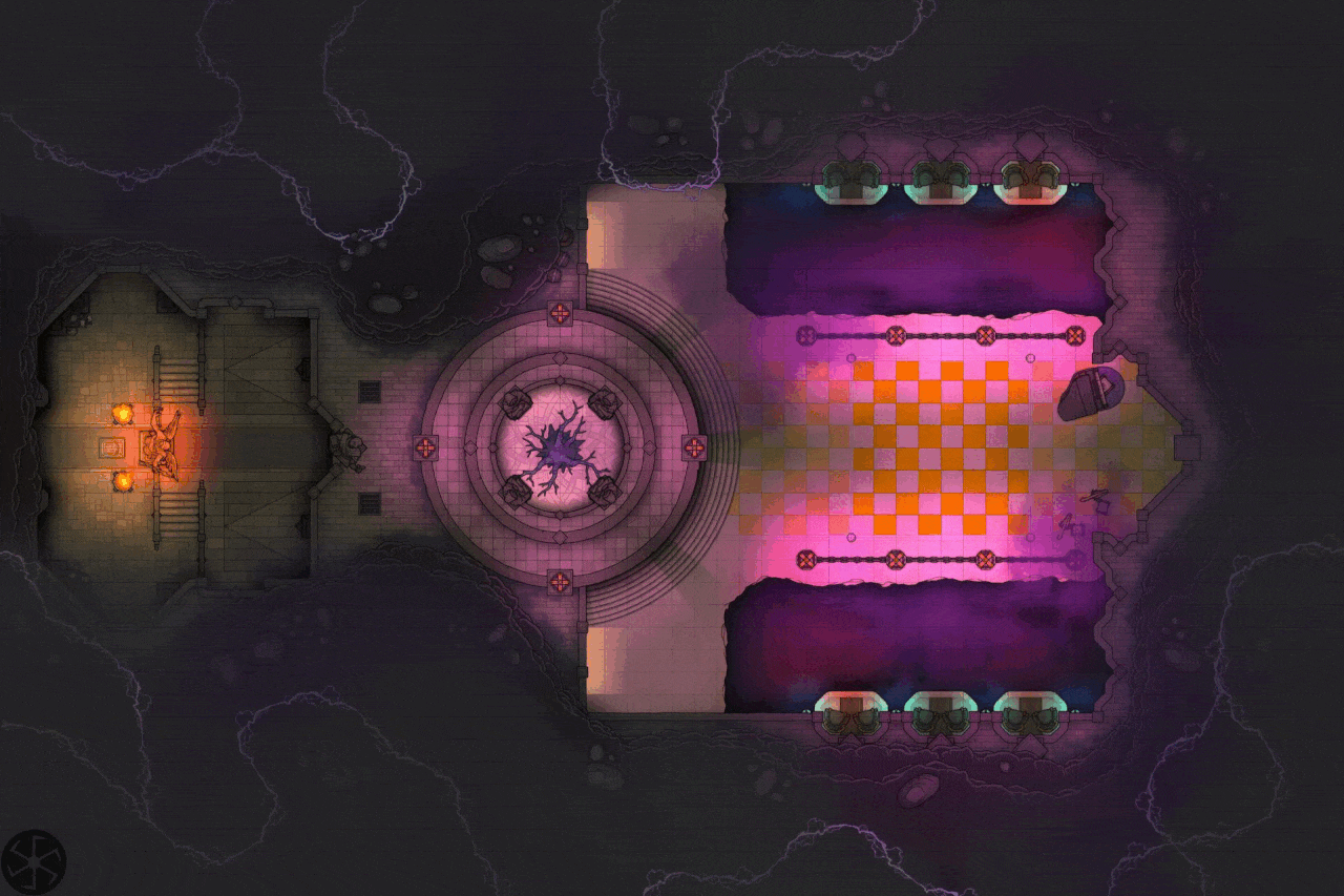 This dungeon represents one of the grand palaces of the Eptir, carved deep within a cave. Its entrance immediately commands dominance, setting the tone for what lies ahead. Inside, four shrines honor each of the guild’s wings, while behind the palace lies the most sacred place of all, the central dancefloor. It is here that the Myrkvah waltz with the Maru, initiating the assassins’ missions through ritual and rhythm. Yet it also shows a well placed grand chess board, allowing their member to test their wit during their times of rest.